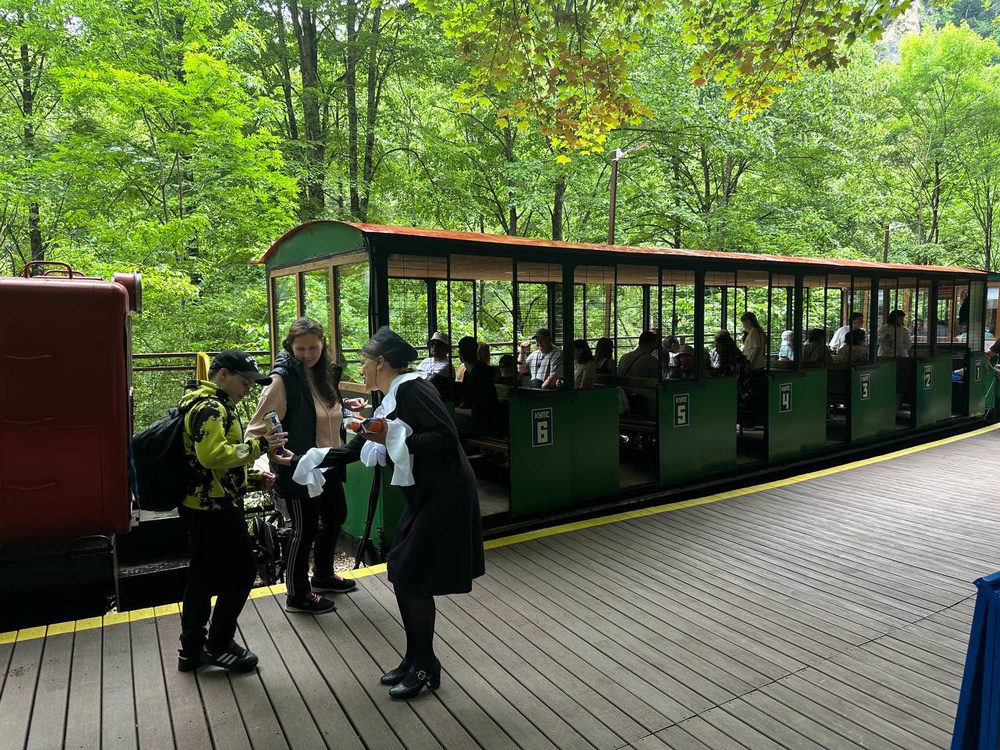 Более 20 лет экскурсионный поезд курсирует по живописному двухкилометровому маршруту от поселка Гуамка до урочища Монахово, являясь визитной карточкой района и одним из самых популярных туристических аттракционов края.
