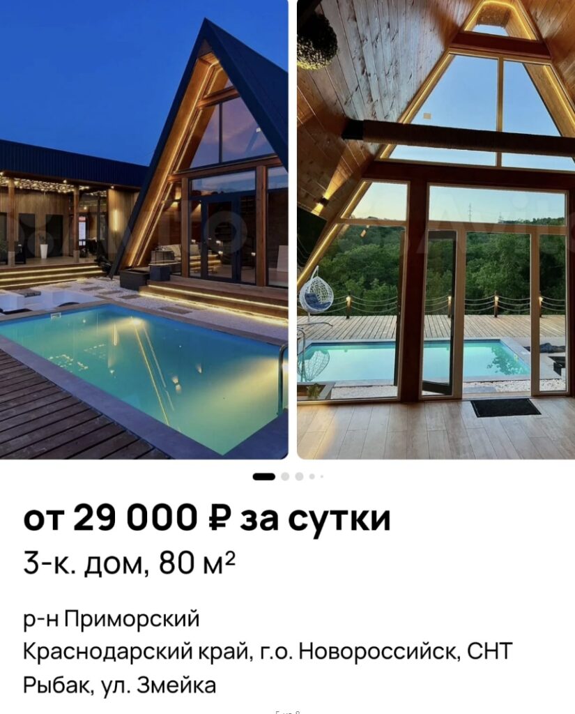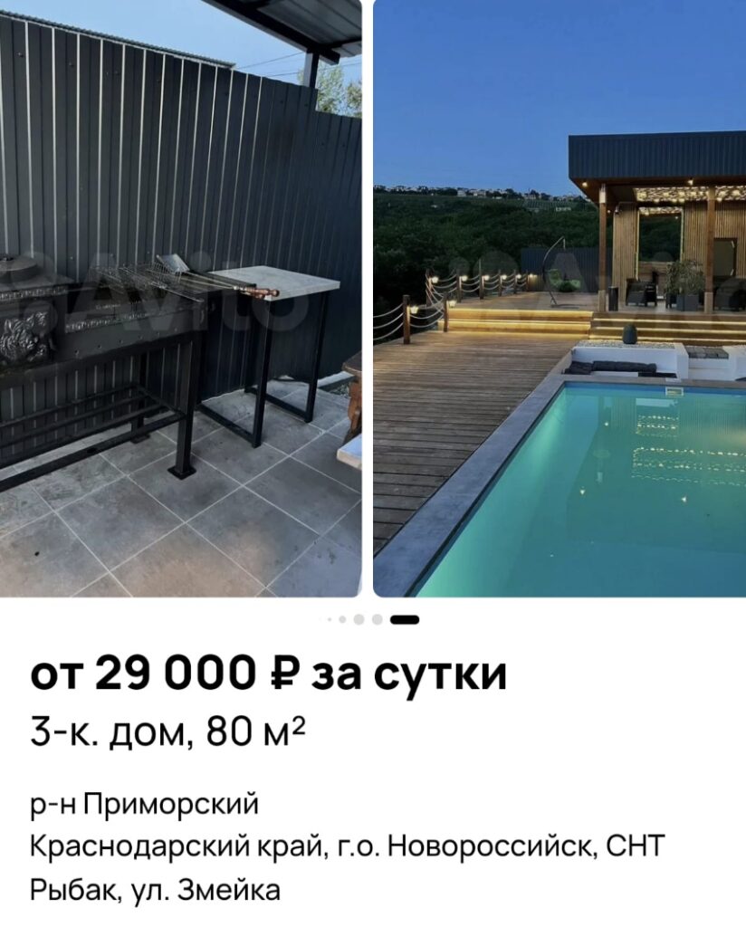 На популярном сервисе Анастасия нашла объявление о сдаче соседского участка. Всего за 29 000 в сутки любой желающий может арендовать двухэтажный дом с баней, бассейном, беседкой, где смогут комфортно отдохнуть среди «вековых деревьев и чистого воздуха», до 20 человек.