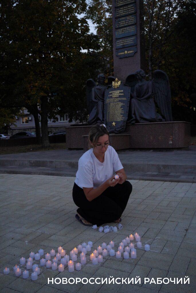В Новороссийске День солидарности в борьбе с терроризмом прошел торжественно: накануне вечером, когда ночь опустилась на южный город, представители городских молодежных движений и общественных организаций в память о жертвах террора выложили фигуру из двух тысяч зажжённых свечей в сквере имени Рыбнева.