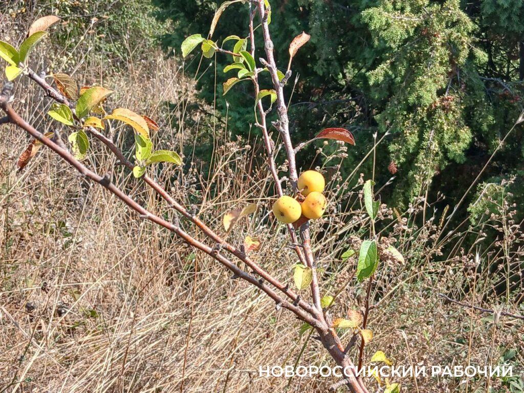 Становится коричневатой листва на ветках дубов и айлантов. Желтеют кружочки семян и листьев на колючем держи-дереве. На яблоне дичке прямо у трассы висят аппетитно-золотистые маленькие плоды. По размеру дикие яблочки не больше алычи. Срываю их, поступившись принципами. Типа можно один раз укусить плод, который уродился рядом с дорогой. Но первое впечатление обманчиво – плоды терпко-кислые.