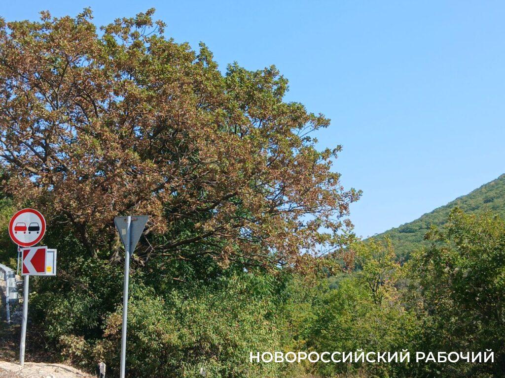 На склонах Маркотхского хребта на зеленом покрове издали видны бледно-желтые и бурые пятна листвы. Прекрасные пейзажи по дороге в Широкую балку уже тронула осенняя кисть. Легкие желтые волны затронули пятиглавый Колдун и конусообразный Амзай.