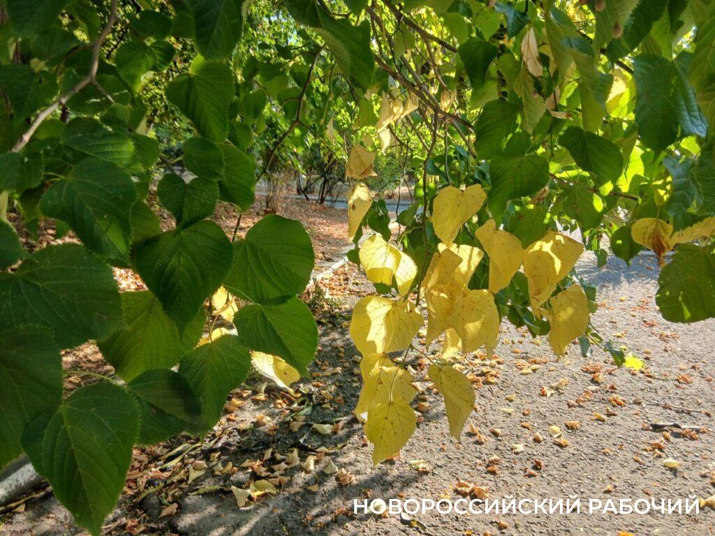 В городской черте тоже ощущается дыхание осени. Газоны в парках и скверах уже усеяны сухой коричневой листвой с каштанов. Желтизна тронула липы. Массивные коричневые стручки гледичии выделяются на фоне мелких желтеющих листиков. На Октябрьской площади зеленеющие ветви деревьев переплетаются с уже покрасневшими и нежно-желтыми ветвями – получаются разноцветные арки.