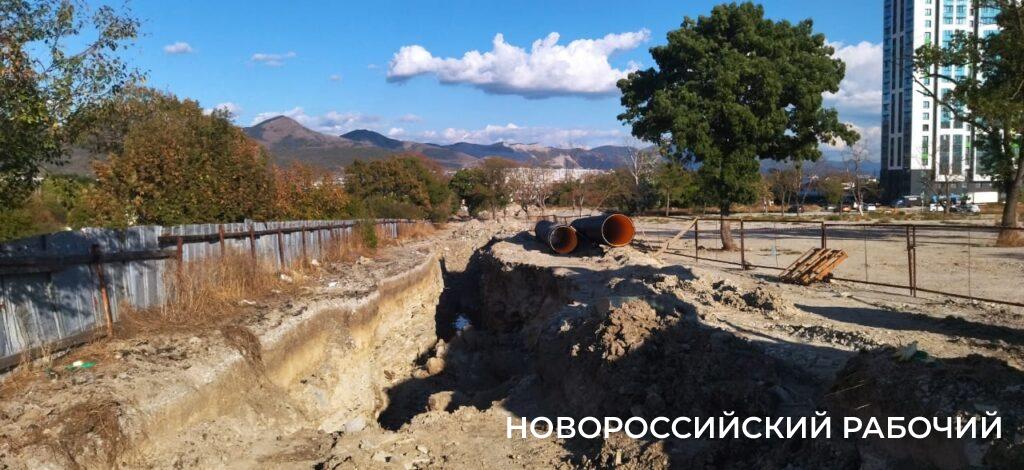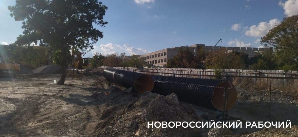 Надо сказать, что в Цемдолине строилась не та ливневка, которая привычна каждому из нас. Это — широкая многометровая траншея, местами глубиной примерно метров до пяти. В том месте, где предположительно погибли люди (место трагедии никак сейчас не обозначено), она глубиной метра четыре и заметен тот обвал, под которым скорее всего и оказались погребенными рабочие. Работы сейчас не ведутся, техника остановлена, на стройплощадке нет никого.