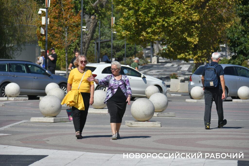 В Новороссийске уже можно заметить «осенних» отдыхающих. Они с удовольствием купаются на пляжах, ходят по городу в летних шортах и сарафанах.