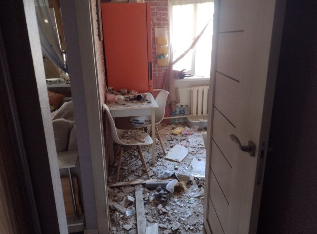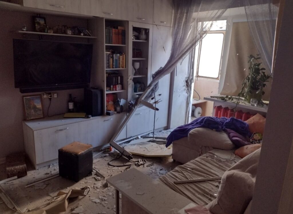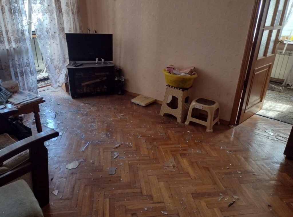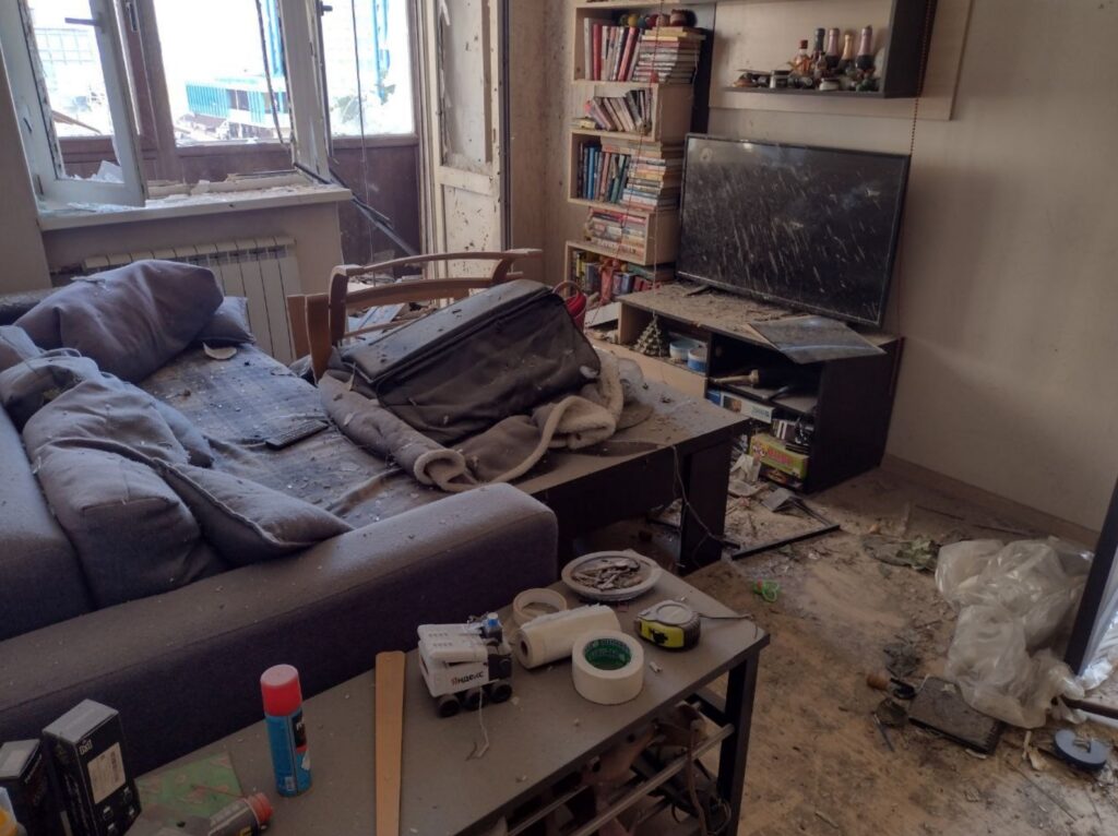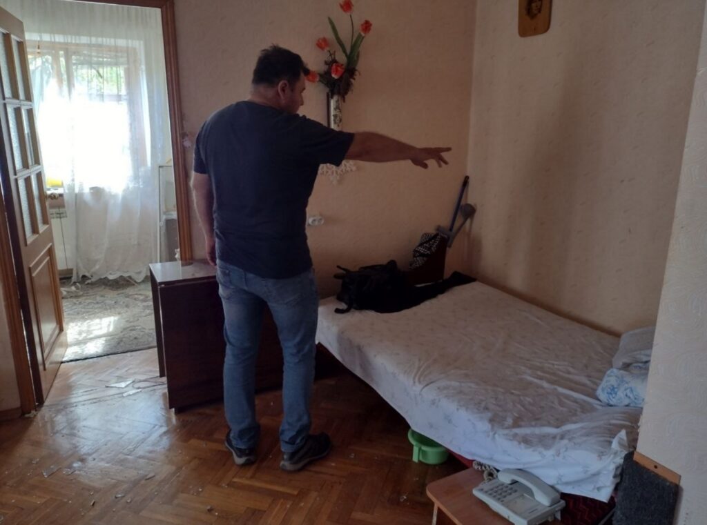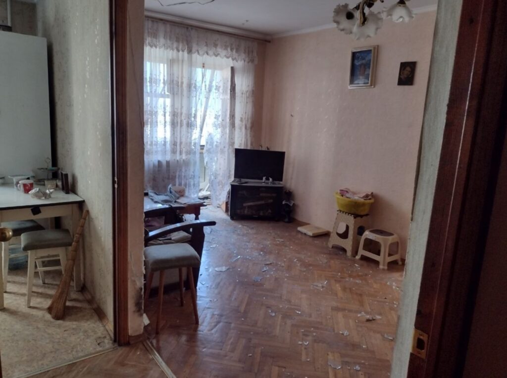 — Я ухаживаю за пожилой женщиной, Клавдией Петровной Громовик, проживающей в квартире №6, ей 93 года. Она находилась вчера одна. Когда завыли сирены и прозвучали первые взрывы, она лежала на этой кровати, — женщина показывает нам обстановку в квартире с выбитыми окнами, в которой не осталось балкона и ту самую кровать. Чудом Клавдия Петровна осталась жива. Но очень испугалась, когда спасатели попытались ее эвакуировать и демонтировали дверь.