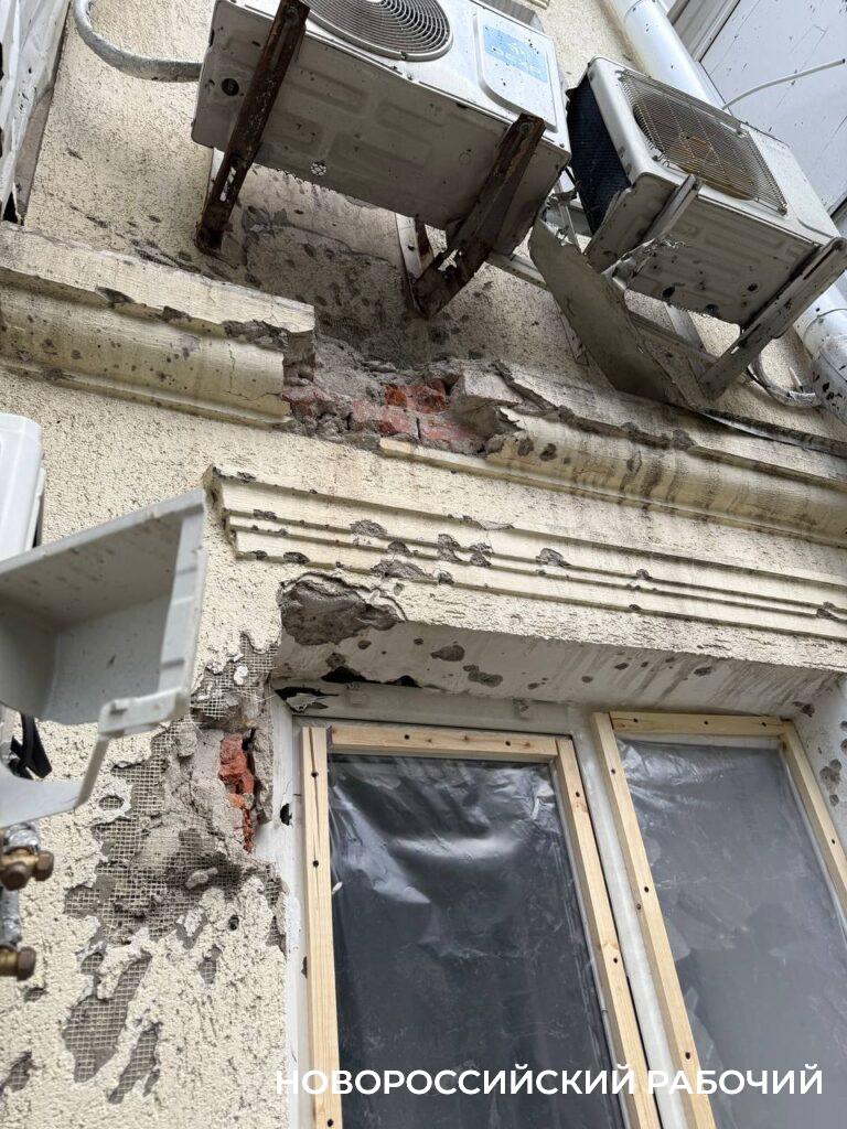 Начались и работы по ремонту фасада, посеченного шрапнелью вражеского беспилотника — внешней стороне дома тоже серьезно досталось.