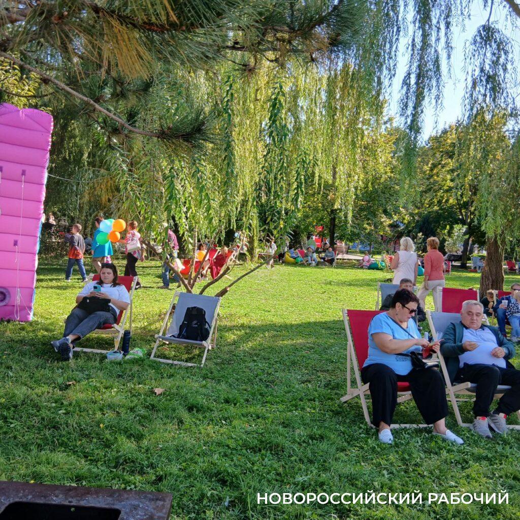 На газоне детвора с удовольствием пишет пейзажи на пленере. Газон — вообще отличное место для маленьких пикников, некоторые взрослые располагались там с ланч-боксами и напитками. Но большинство расслаблялись на пуфах и складных креслах.