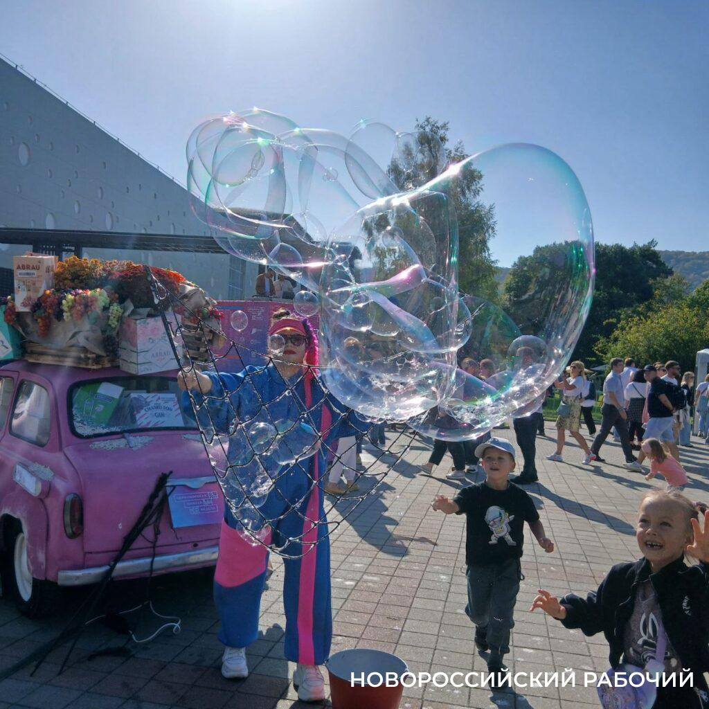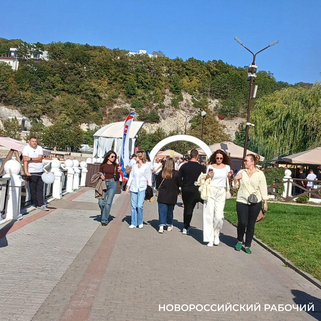 Но и днем было не скучно. Вчера погода сделала участникам Черноморской винной недели настоящий подарок. Было жарко. Как будто еще один летний день. Гости на празднике гуляли по площади Александра II и набережной Абрау в легких футболках с короткими рукавами и даже сарафанах. Температура доходила до +27 градусов. И только слегка пожелтевшая и покрасневшая листва на деревьях парка напоминала о том, что идет второй месяц осени. Такая погода располагала к водным прогулкам, поэтому народ образовывал большие очереди, чтобы попасть на электрический ретро-пароход «Шампань» и катамараны.