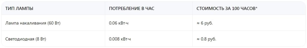 Экономия на одной лампе — почти 5 рублей в час! А если у вас 10 ламп, которые горят по 4 часа в день — это 200 рублей в месяц только на замене.