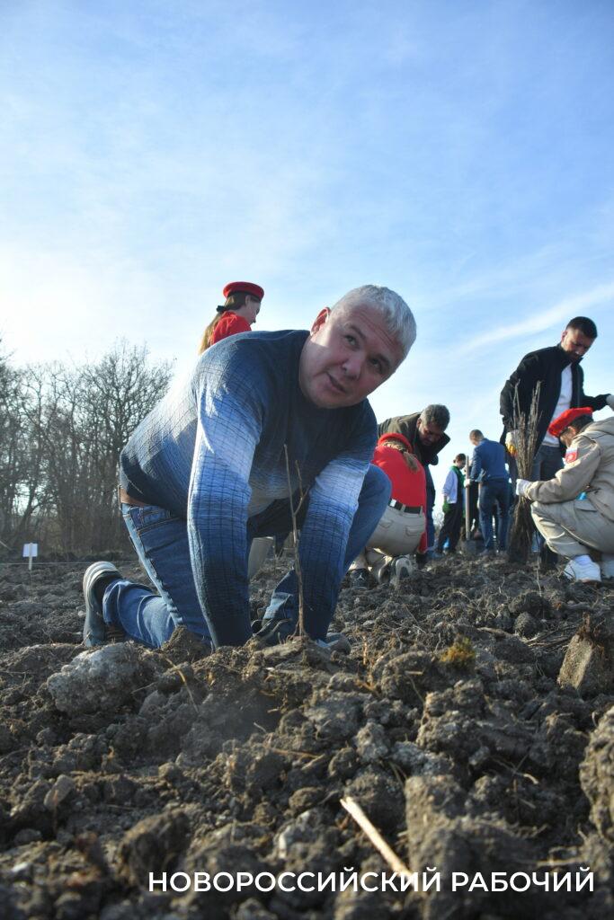 Рядом с другими участниками субботника сажал деревья глава города Новороссийска Андрей Кравченко.