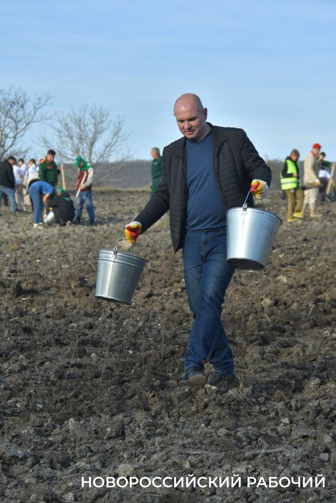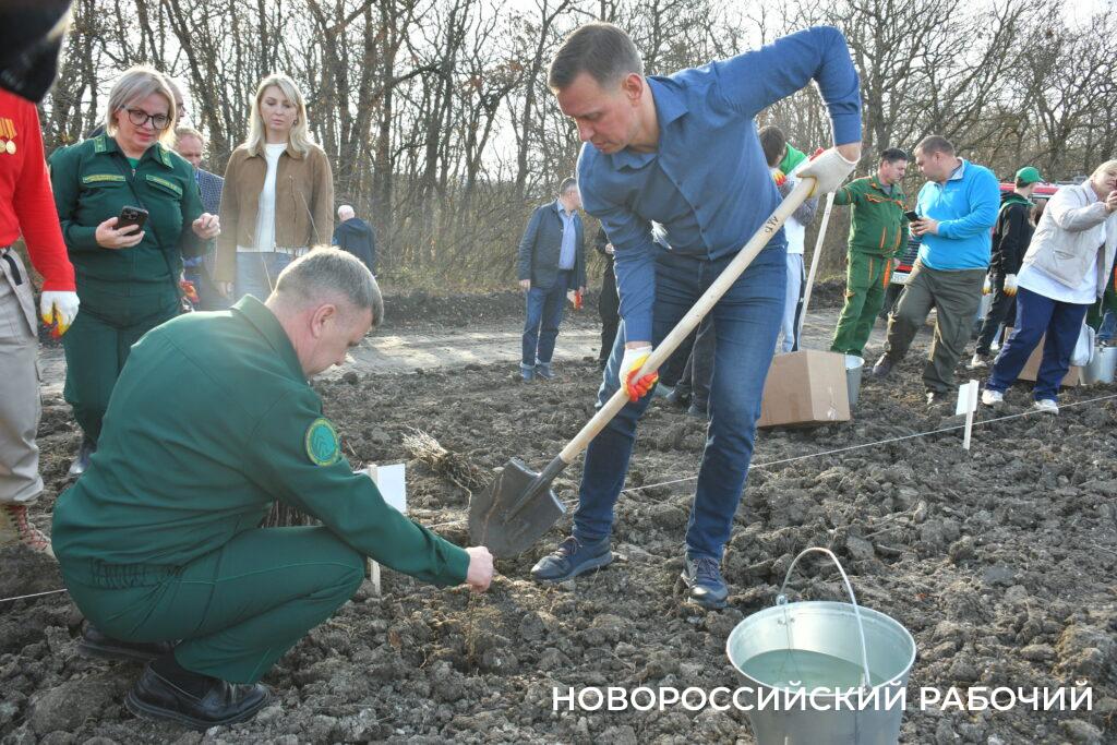 Рядом с другими участниками субботника сажал деревья глава города Новороссийска Андрей Кравченко.