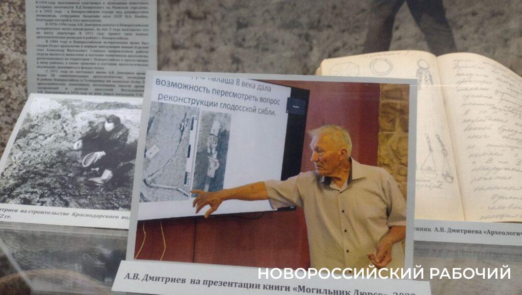 На выставке «Моя профессия — археолог» в выставочном зале на Суворовской представлены уникальные археологические находки, сделанные Александром Дмитриевым и его коллегами в разное время, в том числе и в Мысхако и в Дюрсо, а также ретрофотоснимки из архива музея из многочисленных экспедиций Александра Васильевича.