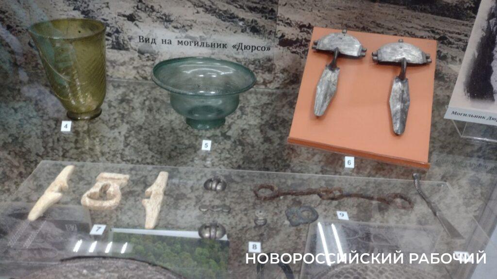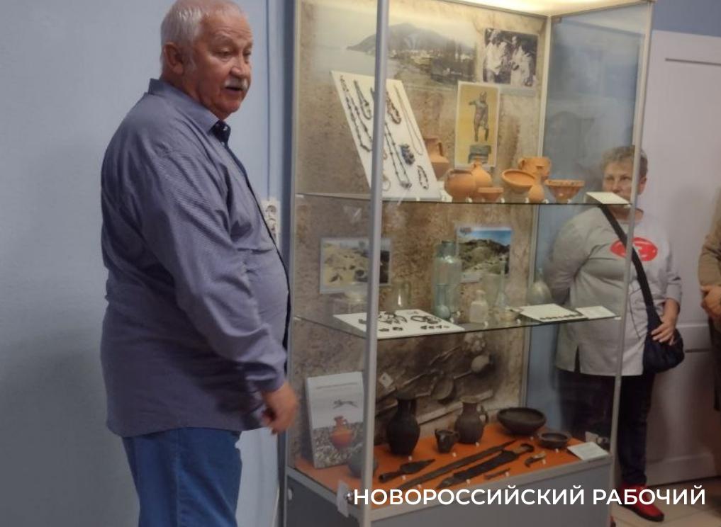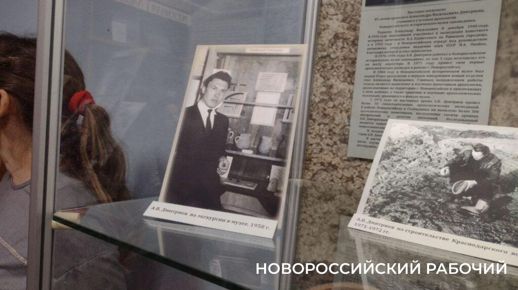 На выставке «Моя профессия — археолог» в выставочном зале на Суворовской представлены уникальные археологические находки, сделанные Александром Дмитриевым и его коллегами в разное время, в том числе и в Мысхако и в Дюрсо, а также ретрофотоснимки из архива музея из многочисленных экспедиций Александра Васильевича.