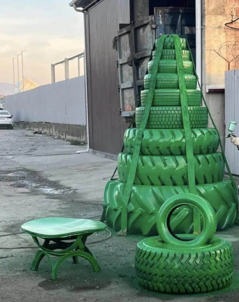 Как выяснил «Новороссийский рабочий», идея создания креативной елки принадлежала генеральному директору компании Янису Ковалеву. Янис Владимирович поделился с «НР», что на всю композицию понадобилось 14 старых шин, которые были сданы в утиль, краска, гирлянда, звезда и хорошее настроение. Деньги были выделены из бюджета предприятия.
