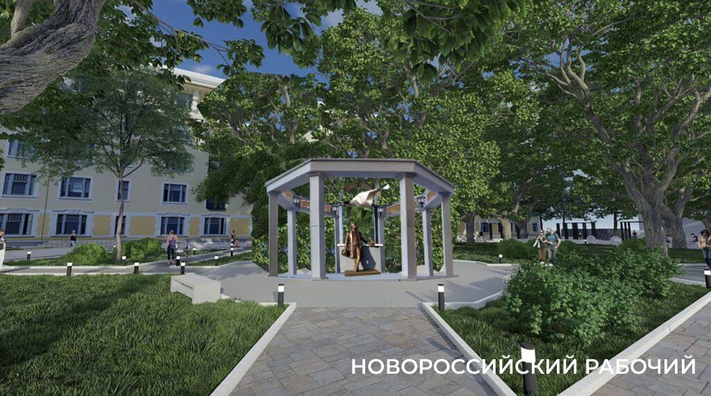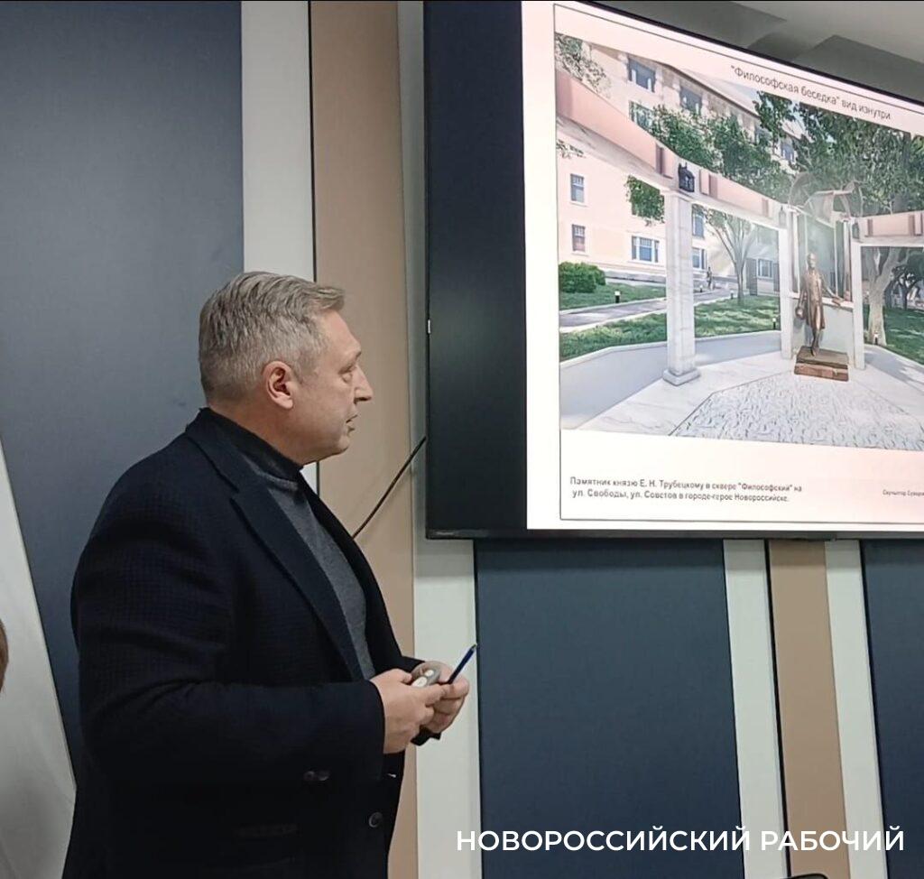 Центром сквера станет беседка в честь известного русского философа конца 19-начала 20 века Евгения Николаевича Трубецкого, который, увы, был надолго забыт несколькими поколениями советских людей. В Новороссийске он провел последние месяцы своей жизни. Собирался эмигрировать, когда шло наступление большевиков. Но умер от тифа и был похоронен вблизи Свято-Успенского храма.