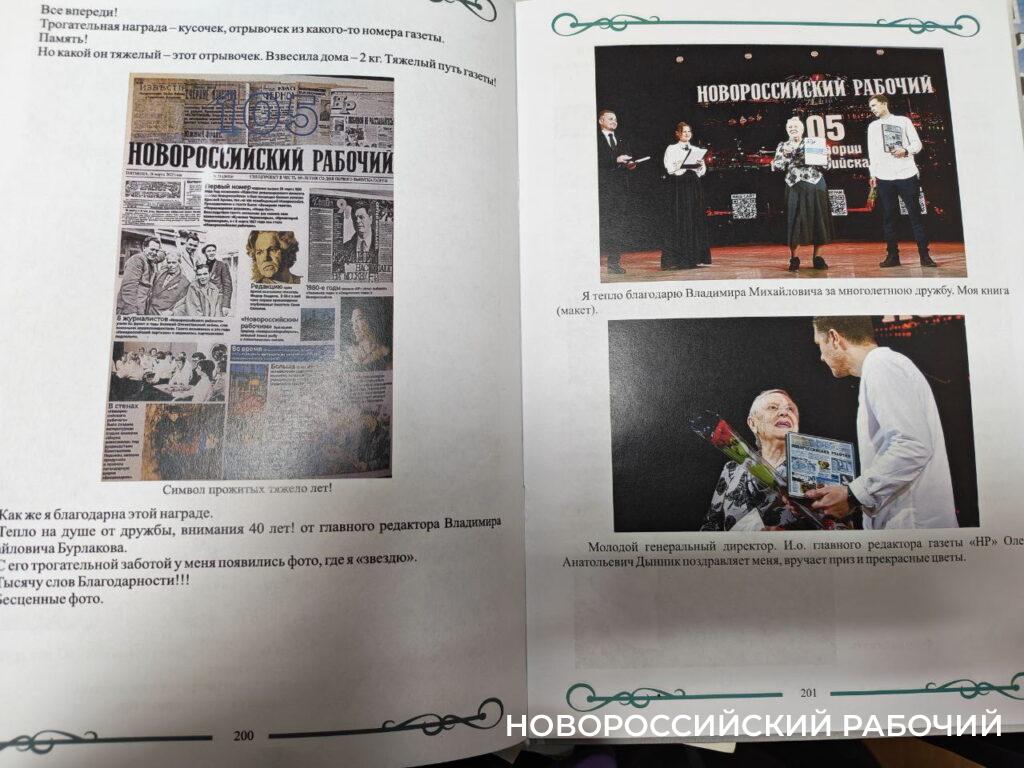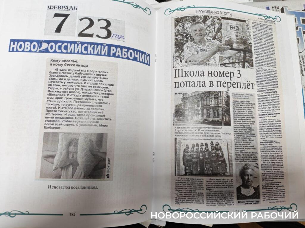 «Многолетнему жизненному поплавку «Новороссийскому рабочему». С любовью, автор», – так Элеонора Ивановна подписала свой подарок, где она собрала все свои заметки, опубликованные в нашей газете за последние 68 лет. В этой книге, между прочим, 213 листов!