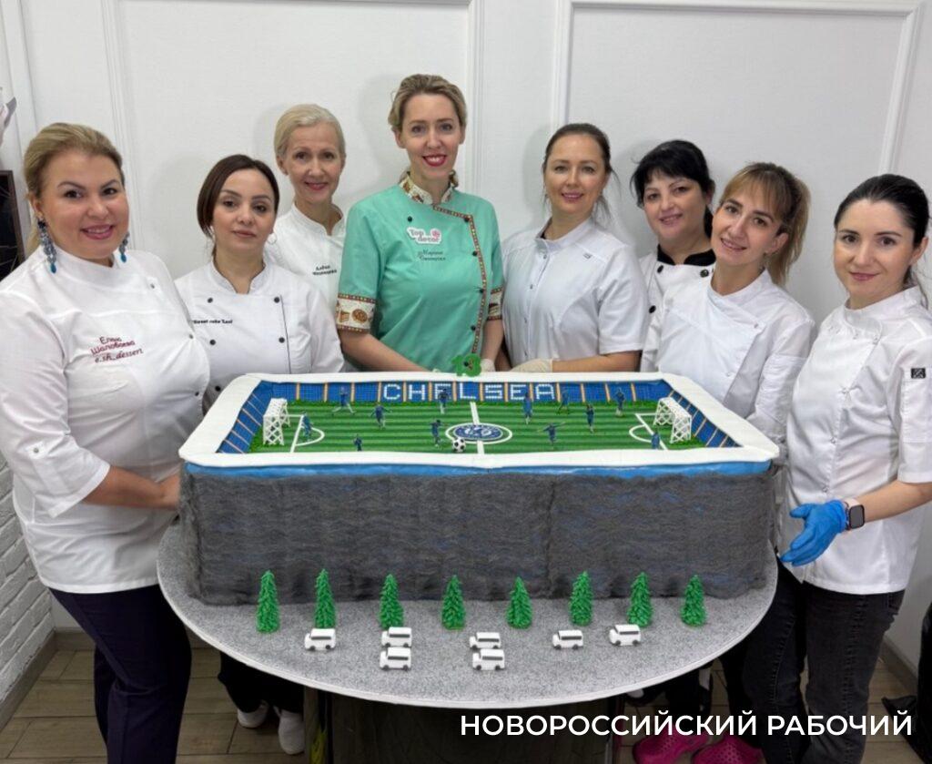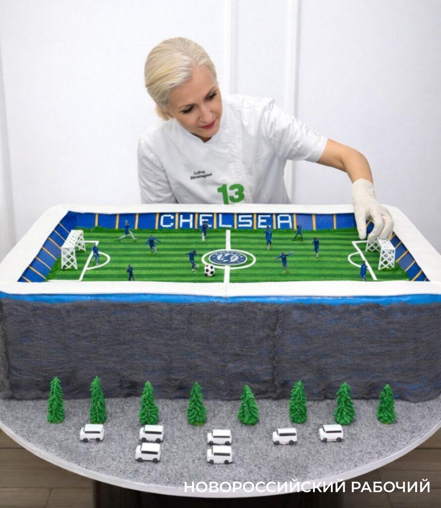 Саша Плющенко – фанат английской футбольной команды «Челси», он и заказал торт в виде футбольного поля, — рассказывает «Новороссийскому рабочему» Алена Мезенцева. – Работать над тортом Синицкие пригласили кондитеров из разных регионов страны, я была единственным представителем от Краснодарского края.