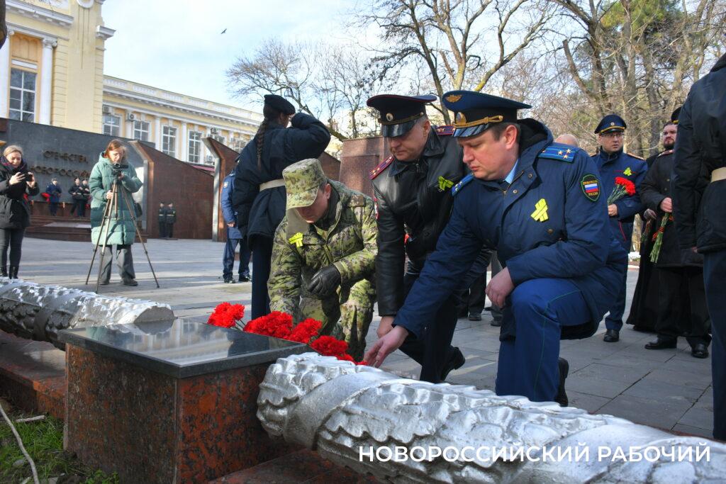 Представители городской Думы, администрации, военные, общественники и волонтеры возложили цветы к одной из памятных тумб городов-героев, установленных на площади. Цветы легли на слово «Ленинград» на мраморной поверхности знака.