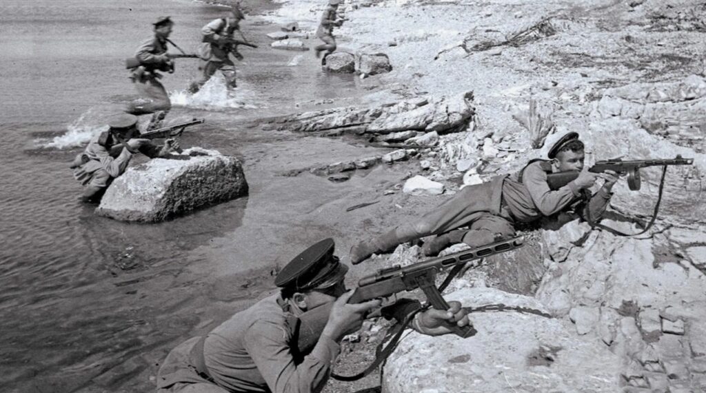 Есть одно правило — оружие не должно касаться воды, чтобы с него можно стрелять по врагу. Папа знал, что подкрепления не будет и нужно обходиться своими силами и имеющимся оружием. Оружие должно быть сухое, чтобы сразу в бой с румынами на земле. Лед резал тело, морская вода обжигала, но папа очень хорошо плавал. Плаванье согревало остывшее тело в морской воде. Своим телом он пробивал лед и плыл вместе с моряками и другими военными, умеющими плавать.