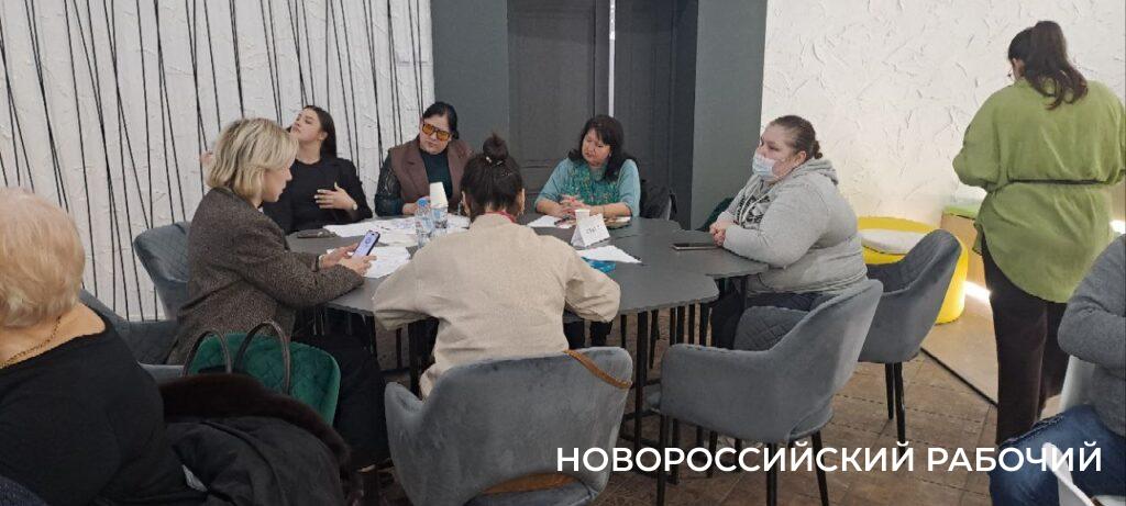 Ничего принципиально в новой схеме не поменялось: в Дендропарке появится, если верить картинке, входная группа, видовая площадка, зеленый лабиринт, эко-павильон, амфитеатр и сцена, смотровая консоль и смотровая вышка. Из нового – свадебная грушевая аллея (звучит очень вкусно) и фотозона. Горожанам, пришедшим на слушания и разбившимся на команды, предположили обсудить обновленную схему и внести свои предложения. Я подсела к столику с новороссийскими общественными активистами.