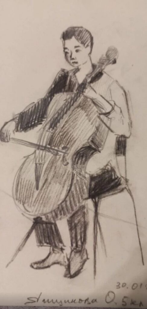— Безусловно! Нам нужны артисты, которые любят музыку, выступать. Мы рады всем, кто умеет дружить и ищет друзей – свой коллектив. Мои ближайшие планы — сделать в Новороссийске концерт, состоящий из музыки советских фильмов. Шнитке, Шварц, Артемьев, Морриконе — сколько классного можно сыграть! Кстати, возможны интересные коллаборации. К примеру, в художественной школы С.Д.Эрьзя мы играли для учеников этой школы, а они в этот момент писали наши портреты. Получилось продуктивное сотрудничество.