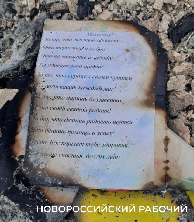 В одной из комнат одиноко валяется бежевая туфелька. Будто Золушка потеряла, спешно покидая бал. На полу лежит обгоревший напечатанный листочек со стихами дорогой мамочке.