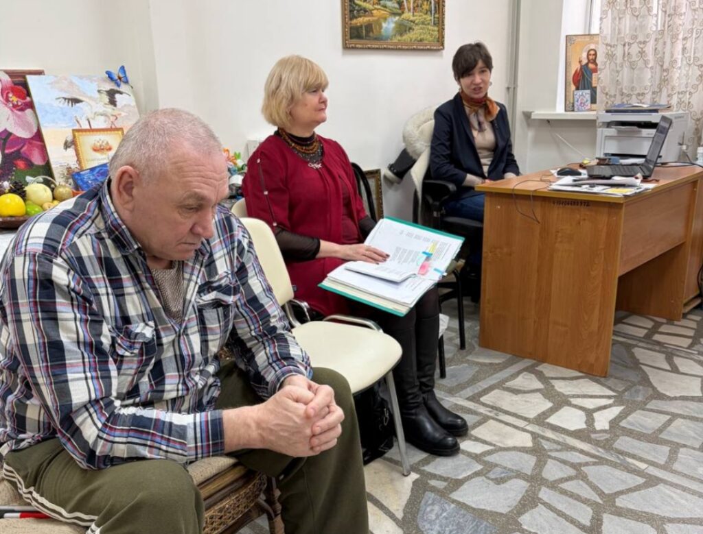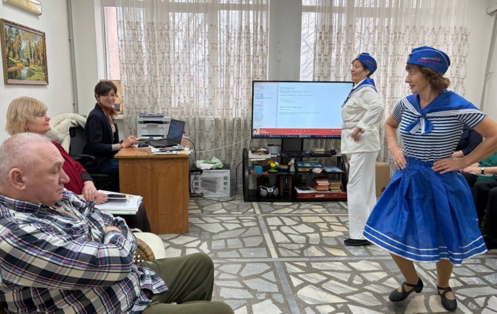 В интернат пришли заведующая отделом массовой работы библиотеки Аница Делич и руководитель новороссийского отделения союза пенсионеров Татьяна Севастьянова, вместе с ней были самодеятельные артисты-пенсионеры из танцевального коллектива «Подруги» Зинаида Бубнова и Вера Пикуль.