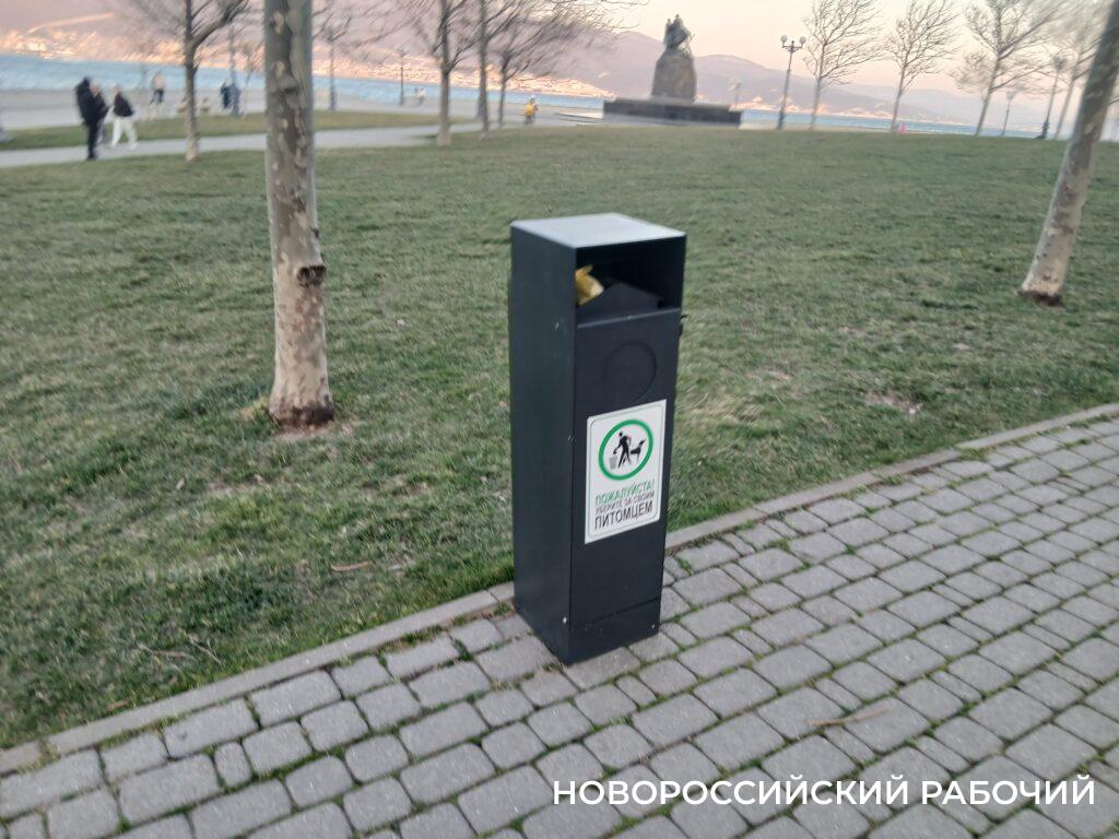 Журналисту «Новороссийского рабочего» в районе мыса Любви удалось разыскать две урны. В глаза они не бросаются, но хочется верить, что владельцы собак о их знают и ими пользуются. Правда, в них бросают и обычный мусор, и окурки.