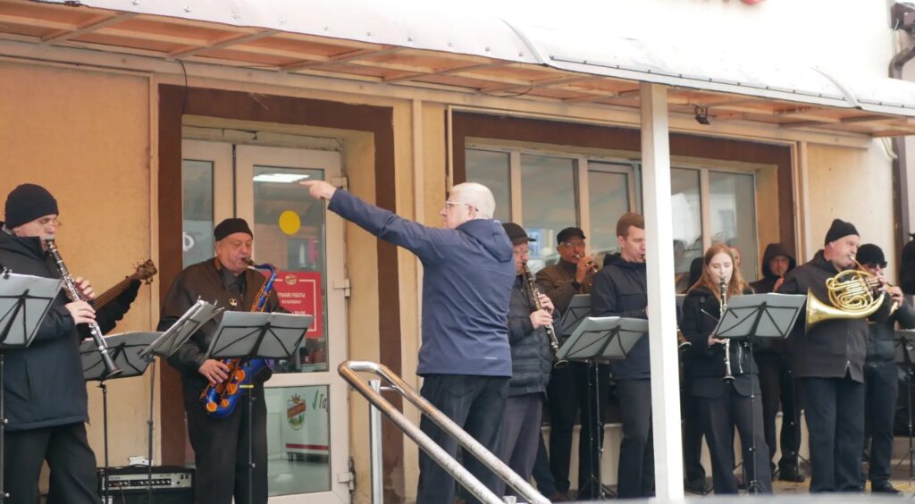 Духовой оркестр, 33 музыканта – 33 богатыря, как их многие называют, во главе с директором оркестра Сергеем Стефановичем Седовым, играли прямо на ступеньках входа в рынок. Заводные, известные всем с детства песни вызывали у посетителей и продавцов рынка и ближайших магазинов улыбку и настраивали на позитив.