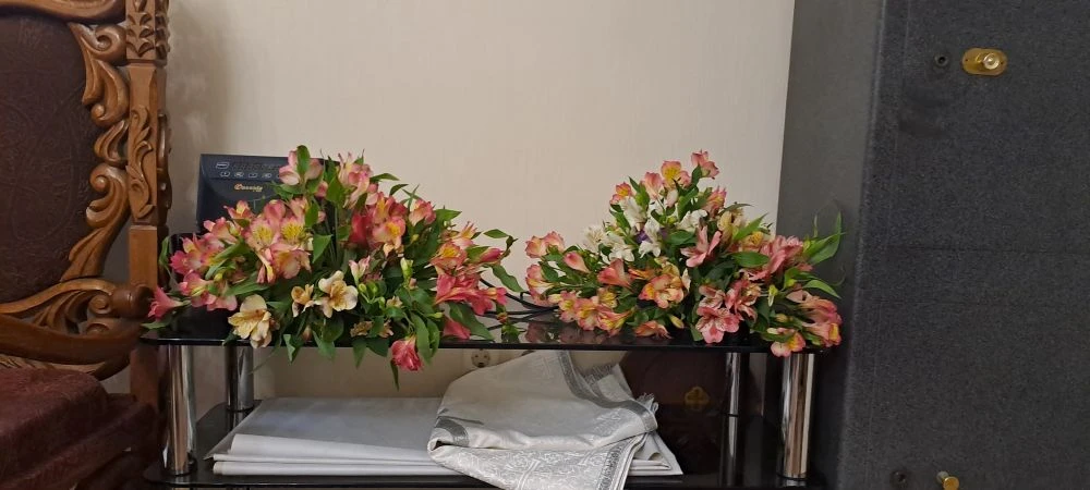 Обычно матушка задолго до праздника обзванивает фермерские хозяйства в поисках цветов для украшения. В этом году она закупала гортензию, розу, тюльпаны, гиацинты, хомаломену, анемоны на цветочном складах. Свежайший ранункулюс доставили из теплиц Раевской.