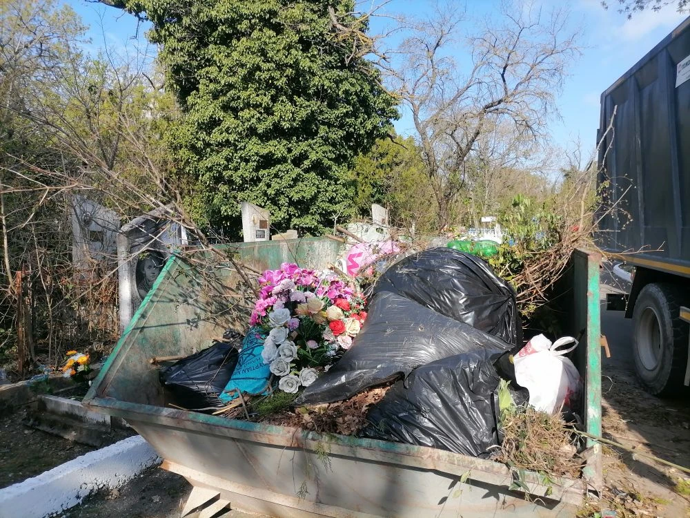 Подрядные организации пилили ветки, убирали мусор, вычищали дорожки, завозили воду. Ежедневно с разных городских кладбищ регоператором вывозилось от 5 до 10 бункеров («лодочек») с мусором.