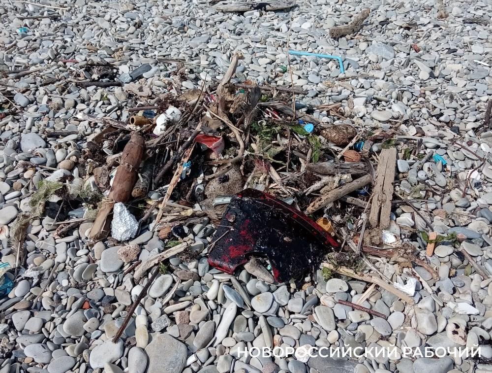 Впервые темные пятна на песке и гальке жители увидели в начале марта. Тогда, после шторма на берег было выброшено много всякого мусора.  Снимки, на которых видно, как выглядела полоска у воды, Георгий Михайлович сделал 8 марта.
