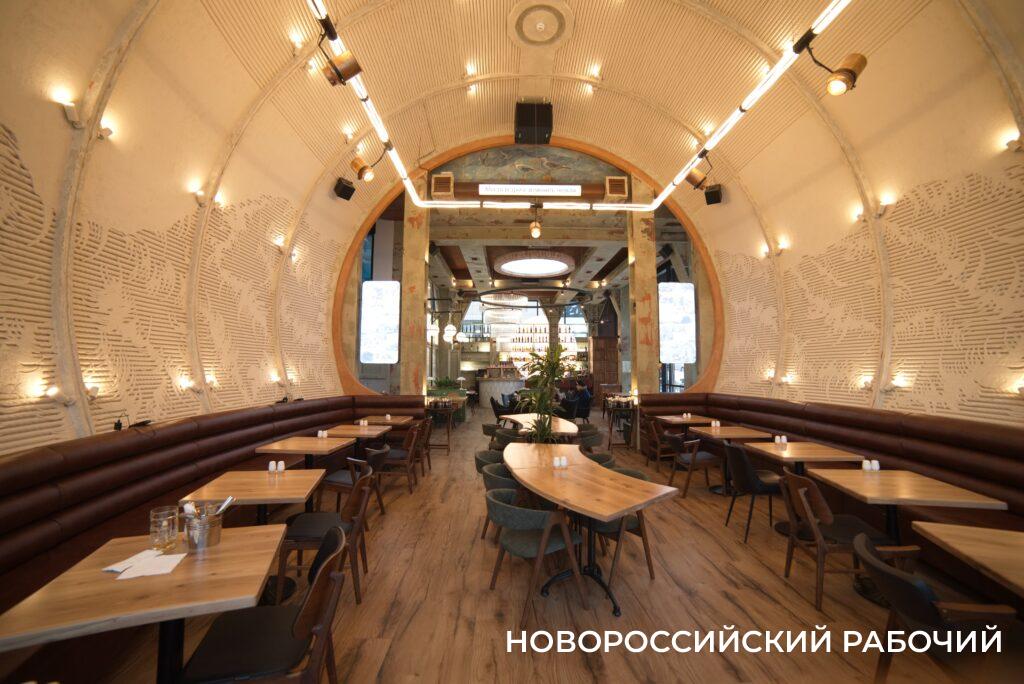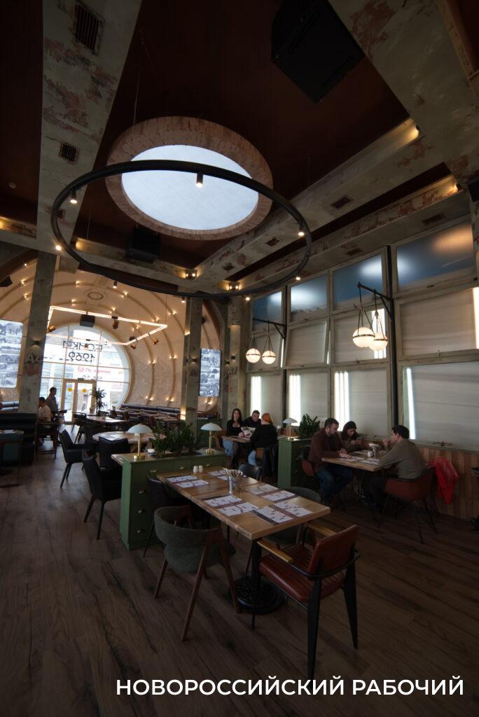 – Сама идея новой «Бочки» была навеяна духом «портовости», мы руководствовались нашей историей. Это – не безликое здание, не очередной ресторан, – рассказывает «Новороссийскому рабочему» управляющий проектом Алексей Морозов. – Несущие балки стилизованы под мощные двутавровые балки, колонны пронумерованы как доки, светильники – отсылка к портовым кранам, по внутренней стороне «бочки» идут вихревые потоки нашего норд-оста.