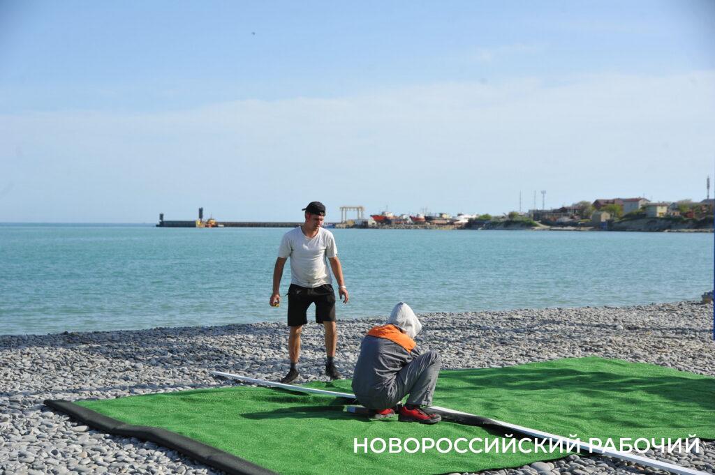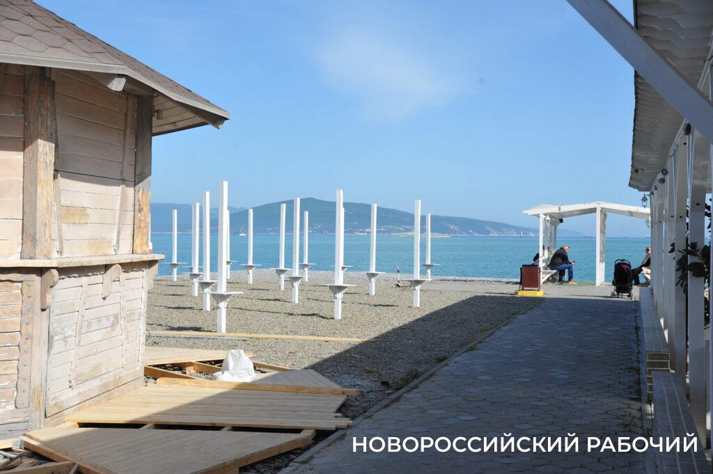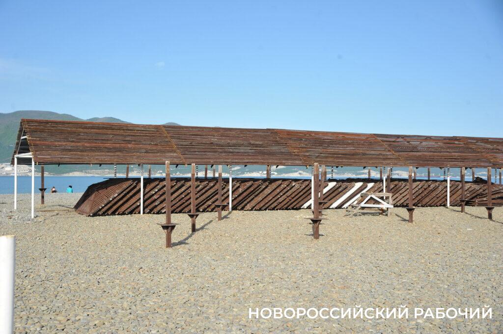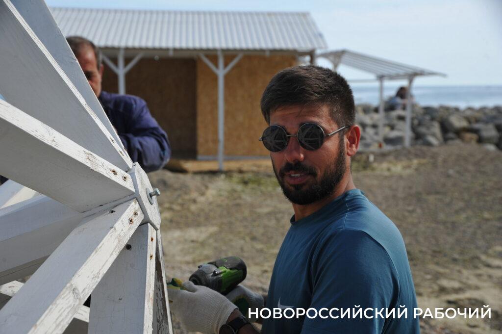Подхожу к рабочим, которые собирают деревянные зонтики, покалеченные штормом. Мастер Хареба Губешвилли говорит, что бригада будет стараться успеть их отремонтировать к майским праздникам, но не факт. Поэтому, отправляясь в Мысхако, захватите защиту от солнечных лучей.
