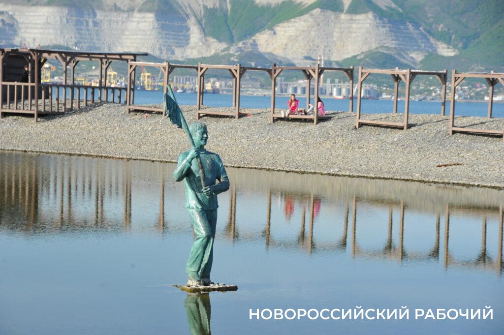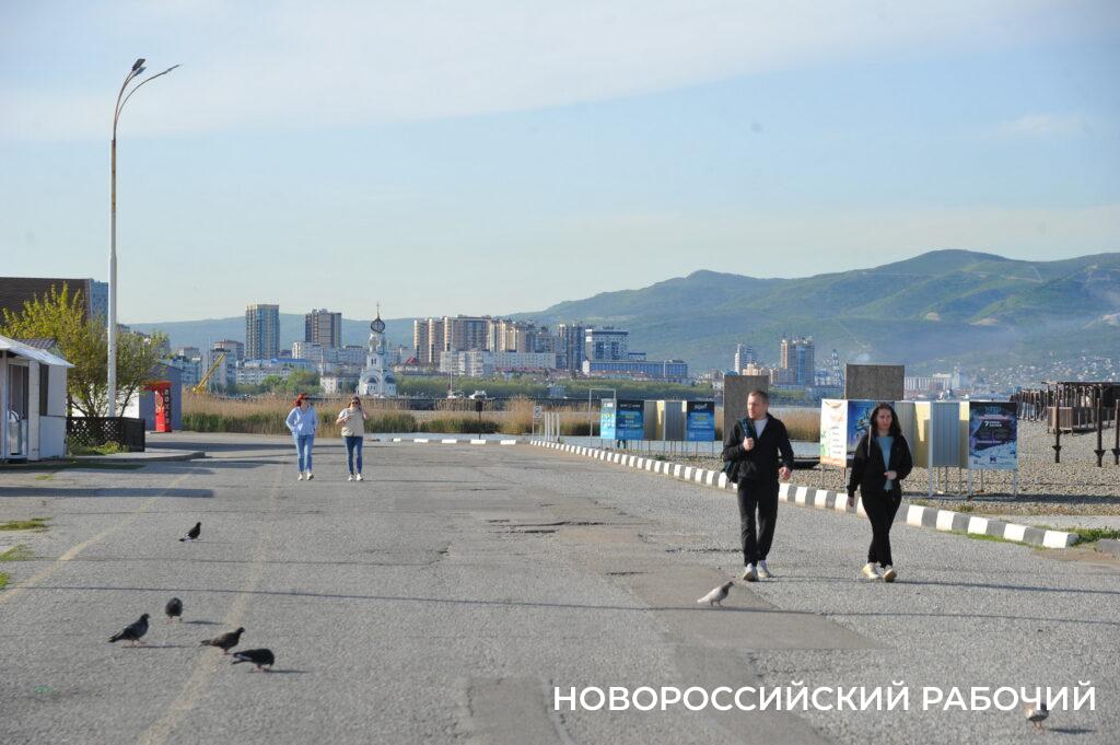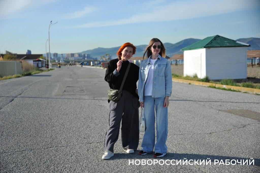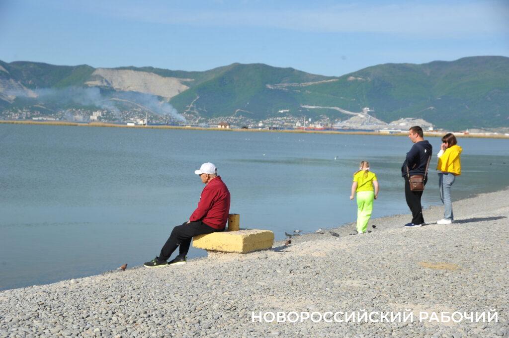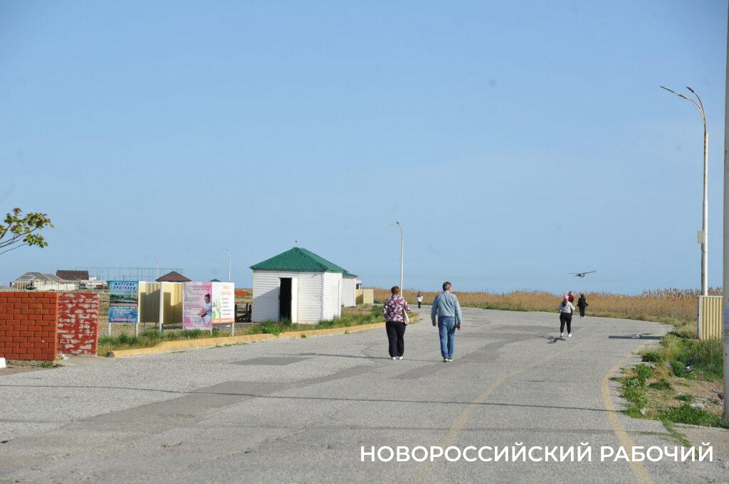 Берег моря в Мысхако в середине рабочего дня не пустует, насчитываю 26 компаний отдыхающих. Хотя никакой курортной инфраструктуры пока нет. Рабочие только собирают деревянные зонтики, чинит их после «шторма века». Рядом с берегом склад из брошенных целлофановых пакетов с хламом. Раздевалки уже стоят. Щебень, сбитый штормом в гору, пока не выровнен, приходится ползти в горку. Замечаем двух парней, один в плавках, сейчас полезет в воду. И точно, молодой человек заходит в воду и, погрузившись по шейку, сидит там.
