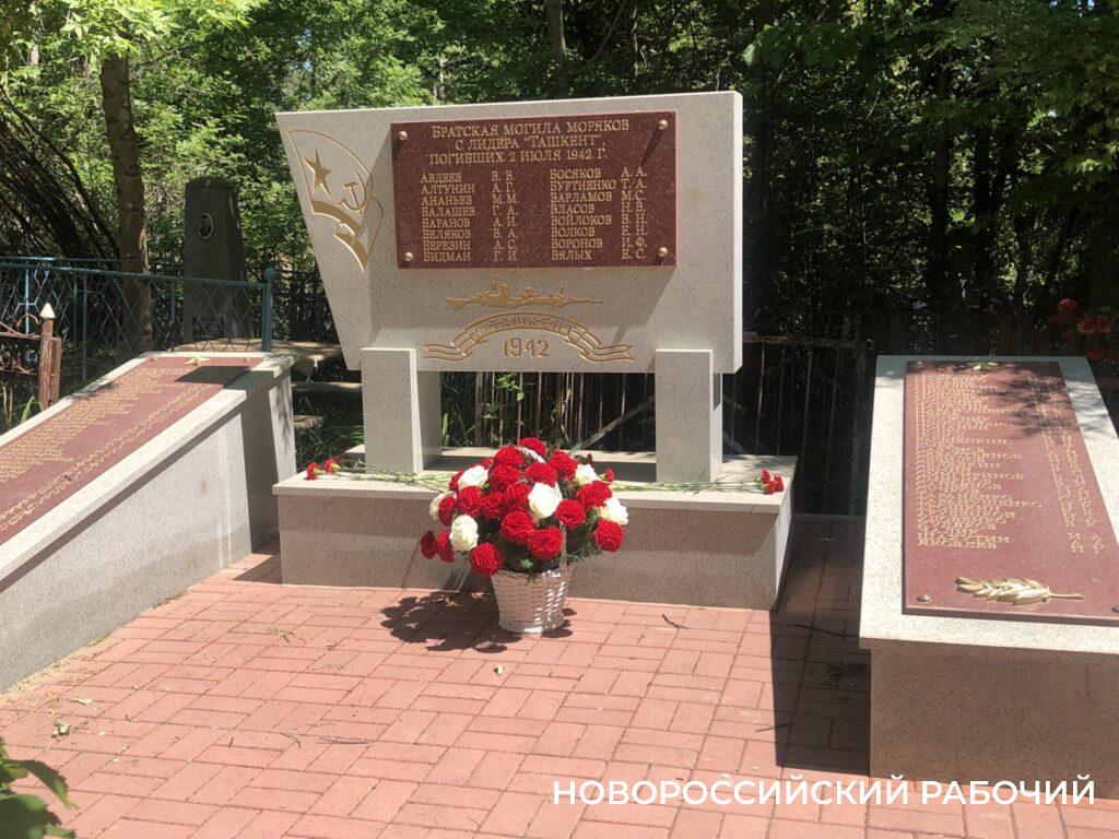 Ветераны ПАО «НМТП» возложили цветы к братской могиле моряков из экипажа лидера эсминцев «Ташкент», погибшего в Новороссийском порту 2 июля 1942 года во время массированного авианалета фашисткой авиации.