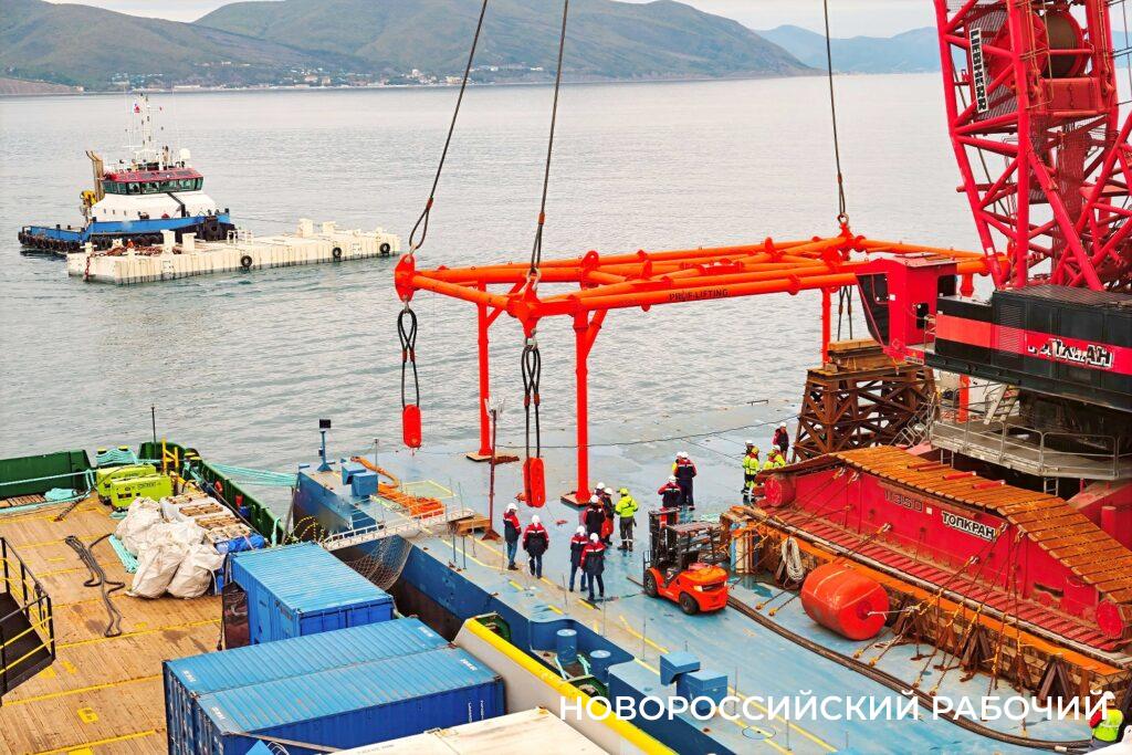 Около трех недель проводили эти работы. 12 удерживающих устройств доставили в новороссийский порт в августе-сентябре на спецсудах. Каждый якорь-кессон, сообщила пресс-служба КТК, представляет собой стальной короб габаритами 30х10х7 м, способный держаться на плаву за счет находящегося внутри воздуха. В ходе подготовки к спуску якоря на дно в порту Новороссийска осуществлялась заливка каждого кессона бетоном, что образовывало на поверхности кессона бетонную плиту толщиной 35 см и объемом порядка 100 м3. Бетонирование увеличивало массу каждого кессона вдвое, с 200 до 400 тонн.