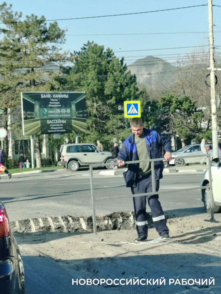 Вчера эту яму, на которую горожане жаловались несколько месяцев, начали ремонтировать. Теперь она стала еще шире и глубже и огорожена. Заодно рядом на перекрестке ремонтируют еще один участок, там тоже глубоко. И это — сужение из-за ограничения движения по правой полосе у самого перекрестка на Анапском шоссе при въезде в город.