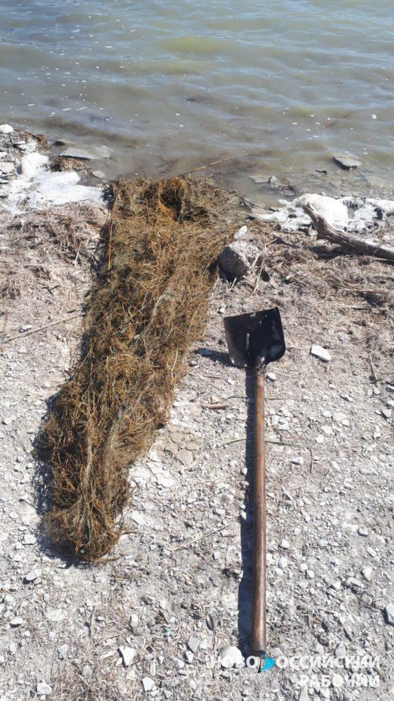 Во время субботника Сергей Стряпухин нашел брошенную кем-то на мелководье браконьерскую сеть. В ней – погибшая запутавшаяся рыба. Также обнаружили лопату, которая пригодится при раскопке прорана. Но главной находкой, удивившей всех, стал крест, лежавший, вероятно, на мелководье долгие–долгие годы. Его обнаружили курсанты колледжа.
