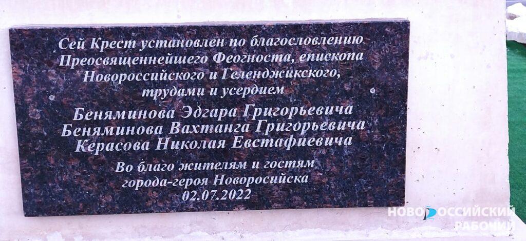 Монументальное сооружение в виде креста высотой 8 метров и весом 16 тонн появилось по инициативе трех предпринимателей — Вахтанга и Эдгара Беняминовых и Николая Керасова. А работал над ним скульптор из Новороссийска Илларион Хаширов.